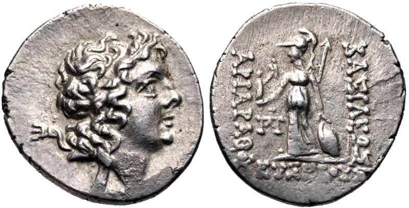 Example: Solidus Numismatik 23, lot 220 | Mint: Cappadocian A References: A Simonetta 8a-b (Ariarathes V), B Simonetta 7 (Ariarathes V), Mørkholm, Ariarathes VIII and IX 1.6.