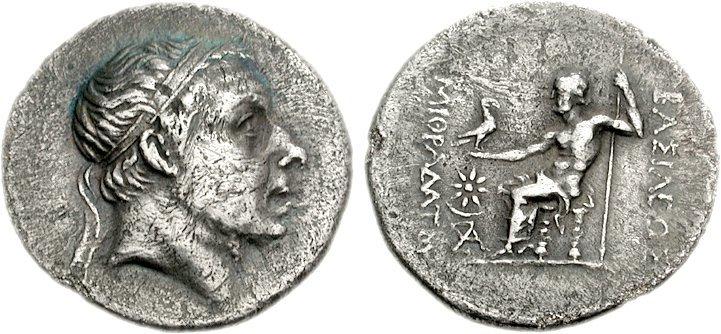 | Reverse: | MIΘPAΔATOY BAΣIΛEΩΣ (Down right, down left).