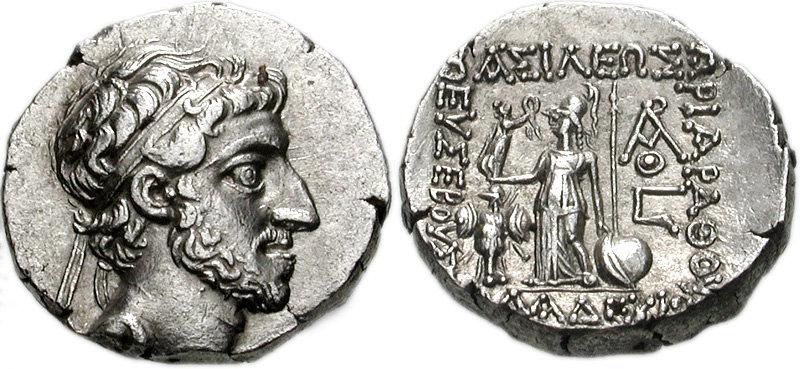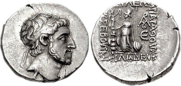 | Reverse: | BAΣIΛEΩΣ APIAPAΘOV EVΣEBOVΣ KAI ΦIΛAΔEVΦ (Across top, down right, down left, across bottom).