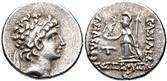 |  Example: Shillam collection | Mint: Cappadocian C References: A Simonetta 21 (Ariarathes VI), B Simonetta 13 (Ariarathes VI), Mørkholm, Further Ariarathes VIII and IX C4.