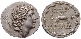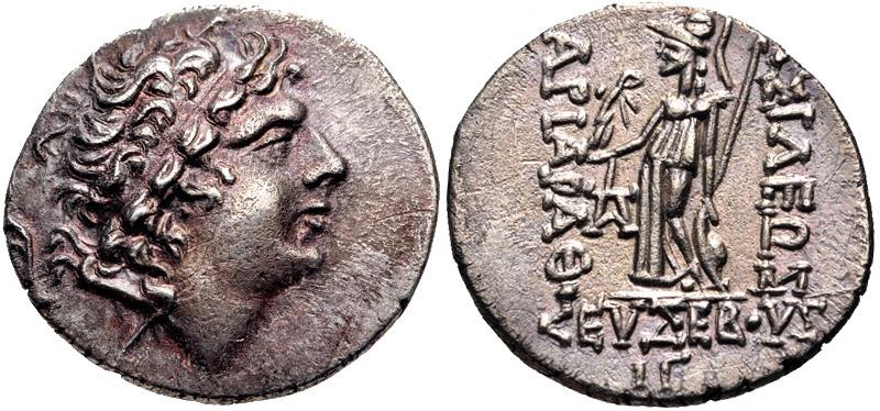 Example: Gerhard Hirsch Nachfolger 319, lot 258 | Mint: Cappadocian A References: A Simonetta 15 (Ariarathes V), B Simonetta 12-13 (Ariarathes V), Mørkholm, Ariarathes VIII and IX 1.9.