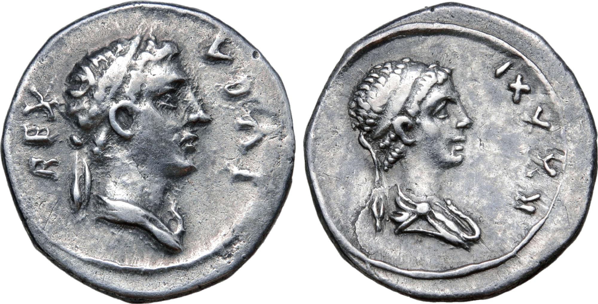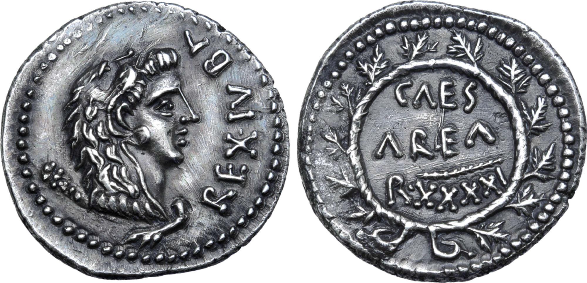 Diademed head of Juba II with club over shoulder facing right. | ||||||||||||||||||||||||||||||||||||||||||||||||||