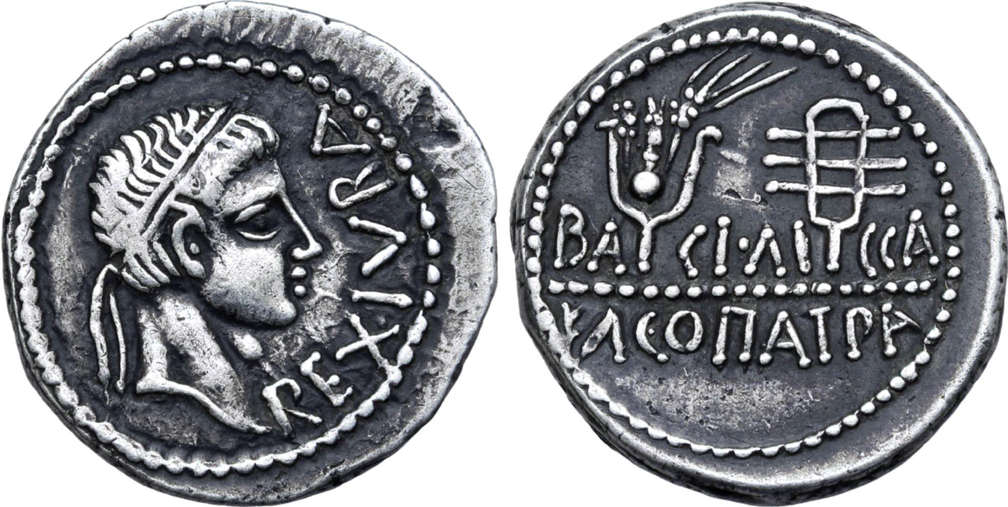 Diademed, draped bust of Cleoptra Selene facing right. | ||||||||||||||||||||||||||||||||||||||||||||||||||